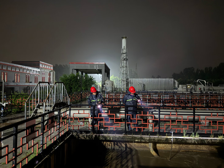 | 近期,全国多地持续遭遇强降雨,并引发洪涝和地质灾害。中国节能坚决贯彻落实习近平总书记关于防汛救灾工作重要指示精神,全面组织所属企业打好打赢防汛防台主动仗,切实履行央企责任担当。 落实落细防汛措施。中环水务北京项目公司在收到北京市暴雨预警后,立即启动应急预案,实行24小时应急值班制度,提前在水厂低洼区域布设沙袋及排水泵,全面疏通管线及排水口,同时加密水质监测频率和站点巡查力度,确保北京地区26个水(厂)站安全稳定运行;入汛以来,中环水务湖州原水公司进一步强化水库运行管理,重点对湖州老虎潭水库的水位计、雨量计及通讯设备进行检查测试,严格执行“3小时报汛”制度,确保水库安全度汛。 中环水务小汤山水厂一线人员进行夜间巡检 全力保障用电稳定。强降雨过后,风电公司洗马林10万千瓦风电场附近路段出现山体滑坡、塌方,项目部迅速派出一支由运维人员组成的抢险队伍,对存在积水积沙积石的沟道和被落石阻断的运维道路进行清理;太阳能公司丰镇电站、香岛电站、白城领跑者电站、镇海电站等在汛期来临前组织对防风防汛关键工作环节的操作流程进行优化完善,对光伏组件隐裂、接头氧化等隐患进行拉网式排查,在强降雨过后第一时间开展安全评估与设备检查,确保河北张家口、内蒙古乌兰察布、内蒙古包头、吉林白城、浙江宁波等汛情较为严重的区域电力安全可靠供应。